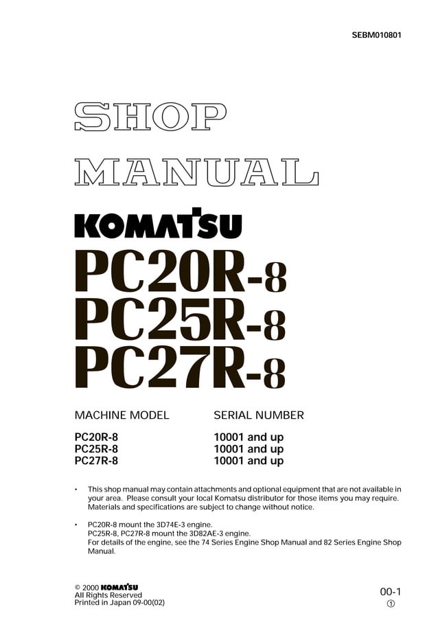 Komatsu Pc27r 8 Deluxe Hydraulic Excavator Shop Manual